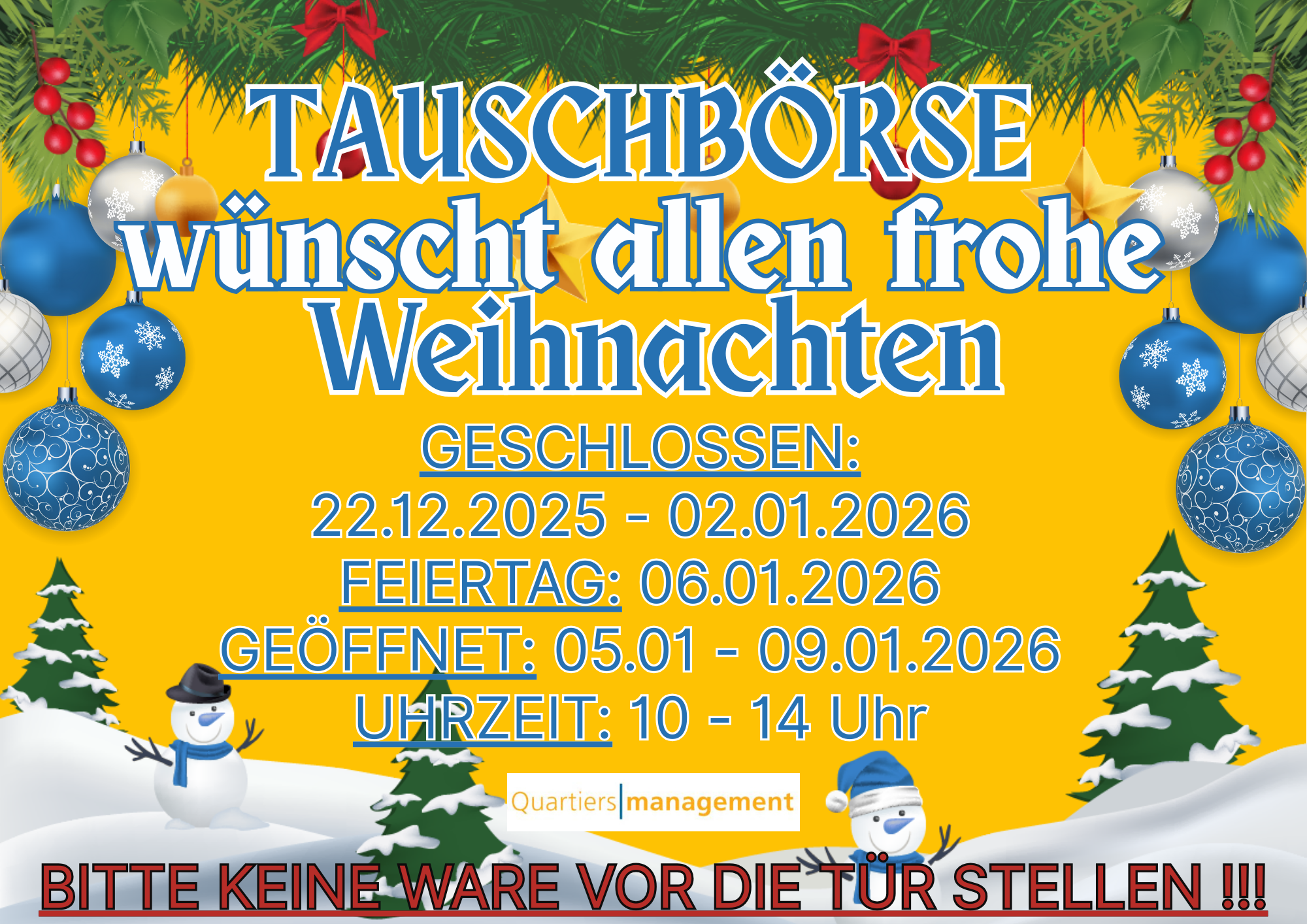 Ab dem 05.01 -09.01.26 hat sie von 10-14 Uhr geöffnet.