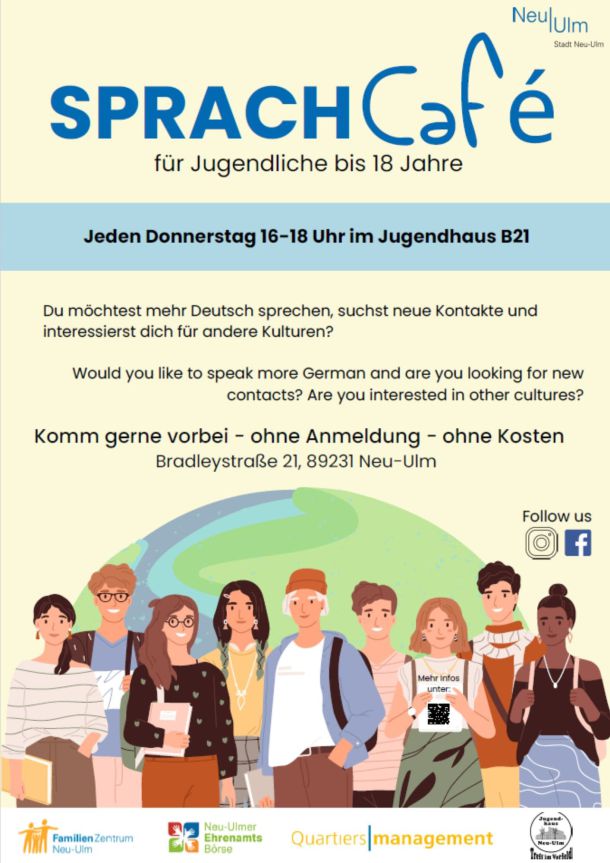 Jeden Mittwoch im Generationentreff um 16:30 & 17:30 Uhr und im Stadtteilbüro Ost, Wallstr.11 um 19:00 Uhr (gegenüber vom Familienzentrum Neu-Ulm)